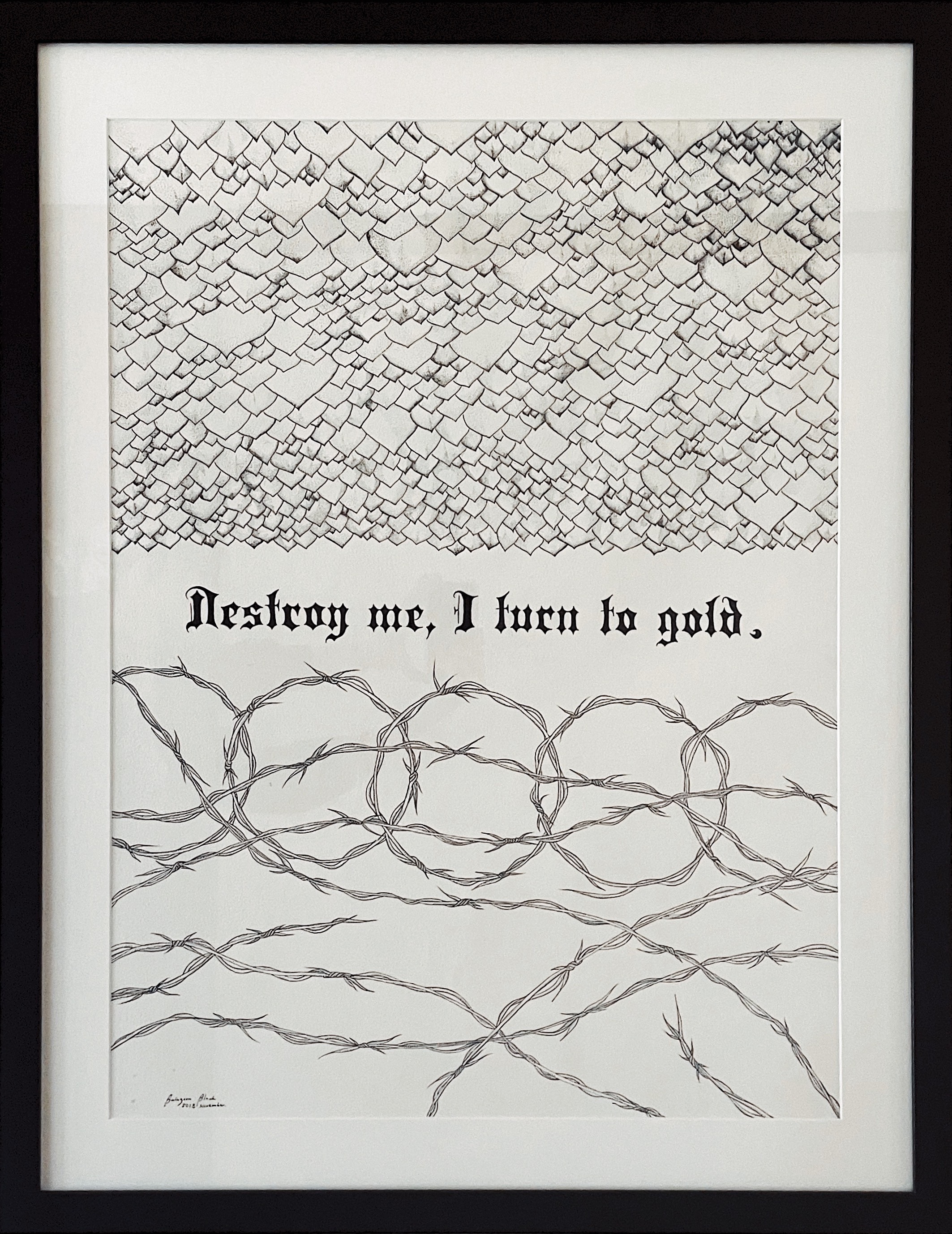 This piece is a created in 2018 with ink pen on Arches watercolour paper, framed by Frames Readymade on Lygon St, Brunswick East.